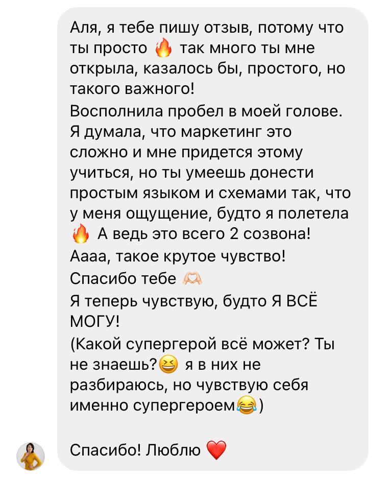 Потому что я уверена в своем продукте. Потому что вижу, как он работает в проектах с оборотом от 500 тыс. до 30 млн. Потому что он создан для таких, как вы — не новичков, а тех, кто уже в процессе, но застрял в хаосе.